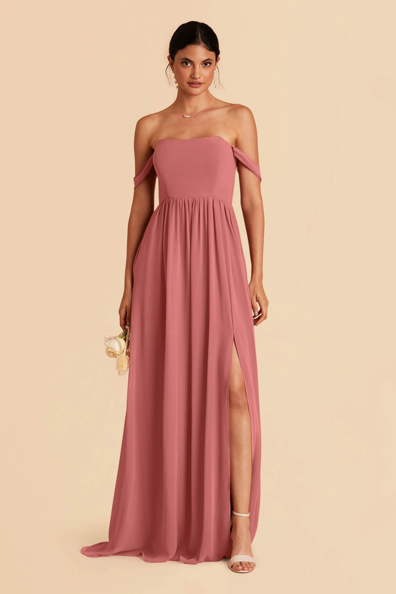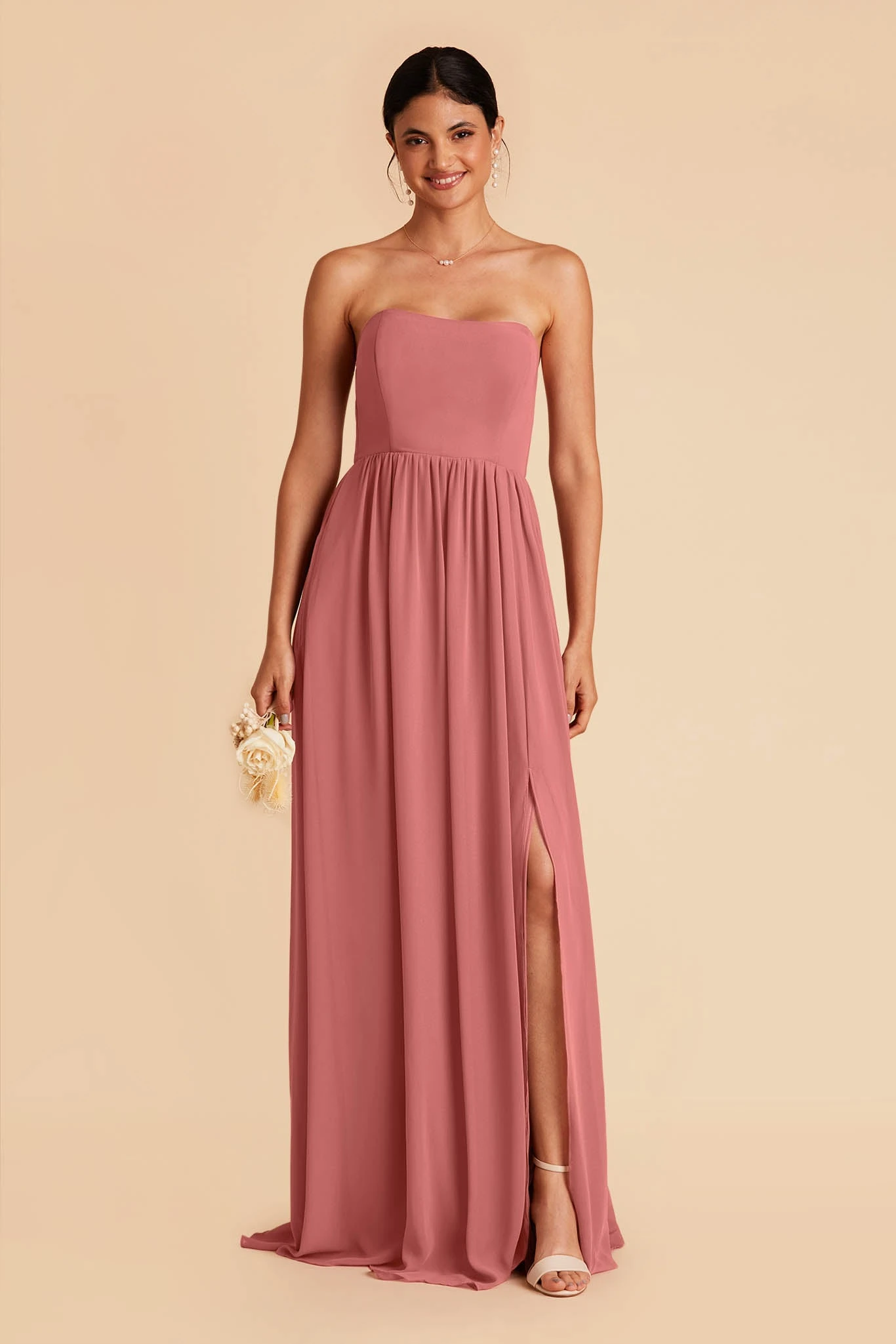 Less is absolutely more with this ultra-simple convertible dress. August features a straight neckline with removable straps. The bodice has boning for added structure and support. You can keep the straps on, remove it completely, or attach draped sleeves for an off-the-shoulder look.