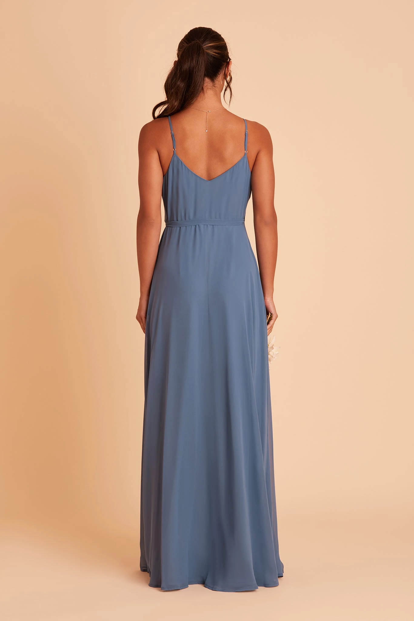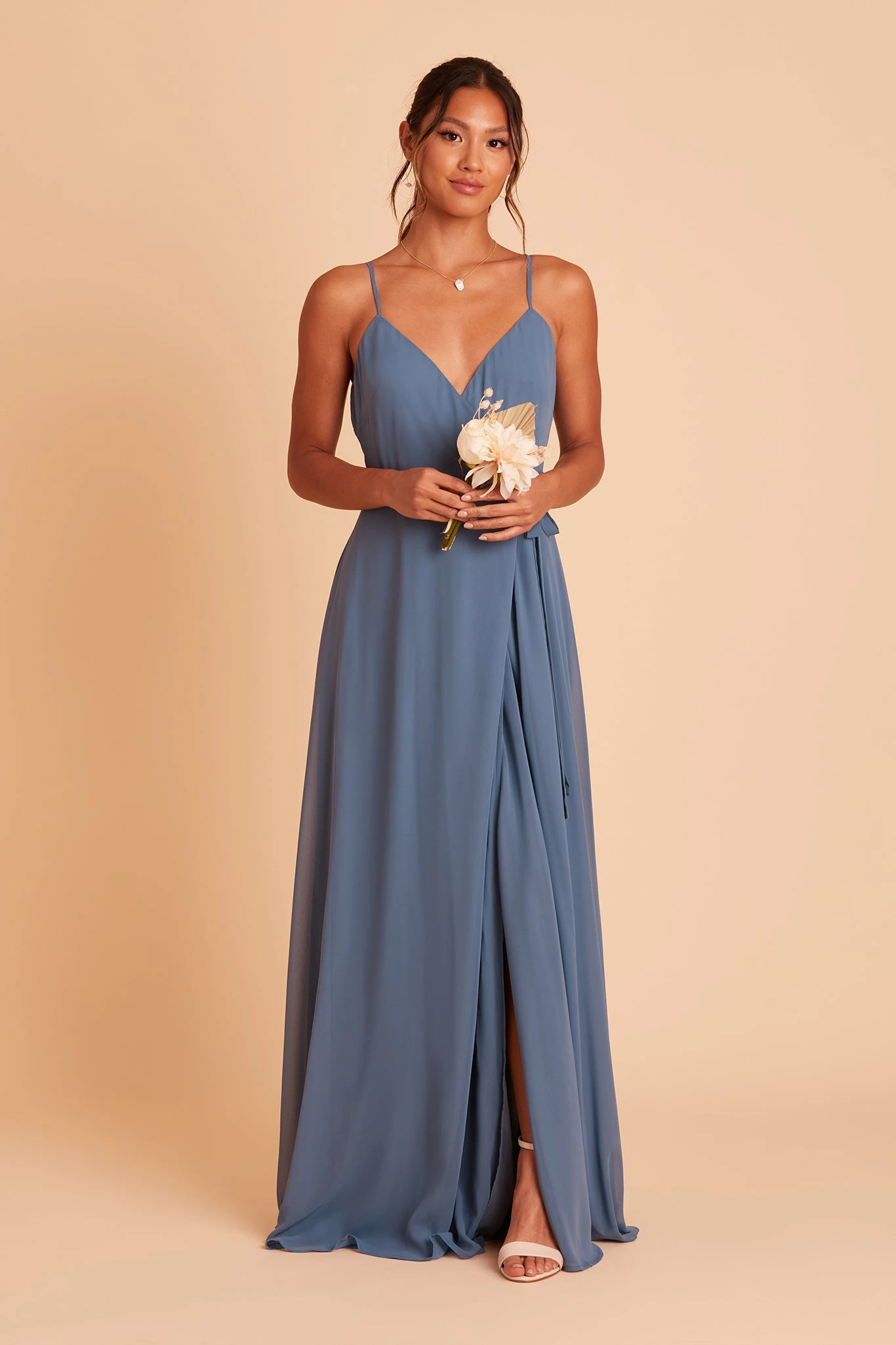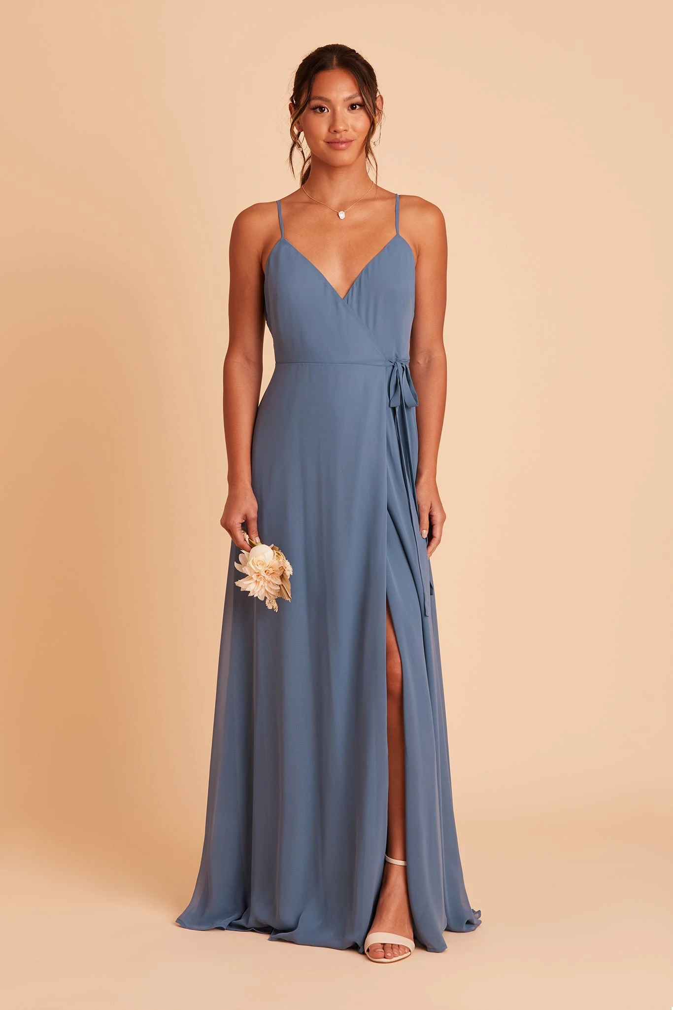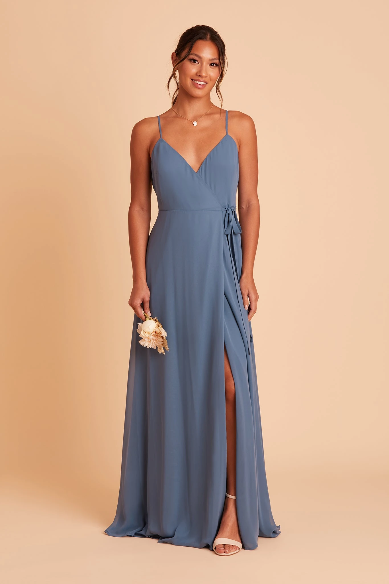 Let’s wrap up the search—this dress is the one. Your girls will thank you for choosing such a figure-flattering full skirt with a waist-cinching bodice sure to look graceful on every body. Speaking of flattering, the signature wrap style draping across the chest for a classic V-neckline plus a matching V in the back draws you in from every angle. Don’t worry, the dainty side bow that keeps this whole thing together has hidden extra security underneath the dress so that the only flashing on the big day will be your crew’s surprise flash dance.
