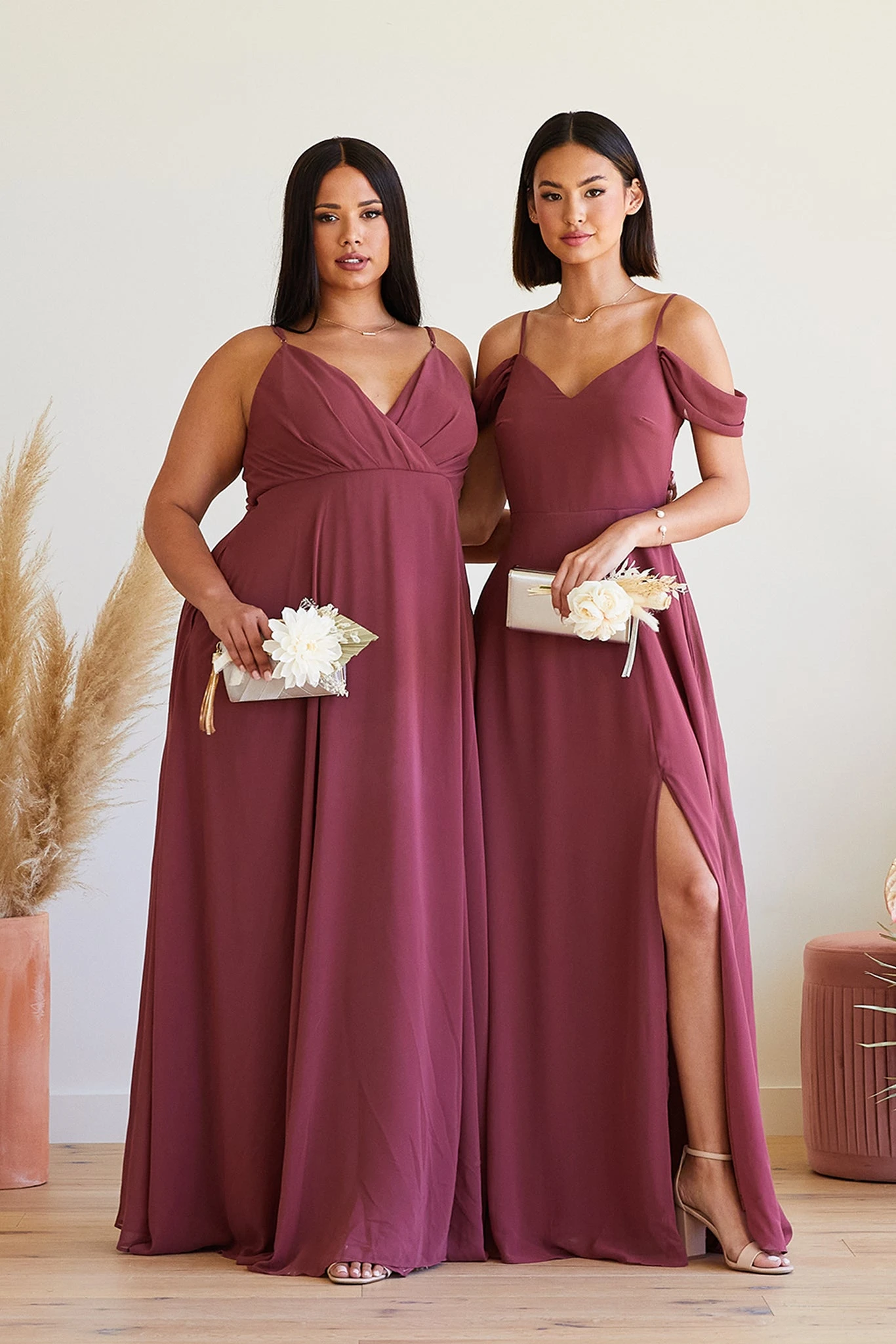 This bridesmaid dress boasts two distinct personalities: soft & romantic, modern & minimal. Thanks to the super smart detachable sleeves, your bridal squad can rock the look that makes them feel authentic while still holding true to your wedding-day vision. With the draped sleeves, it lends a pretty and romantic vibe but without it, the dress transforms to a classic and minimal V-neck with spaghetti straps. Whichever way, the dress is a standout choice for your best supporting ladies.