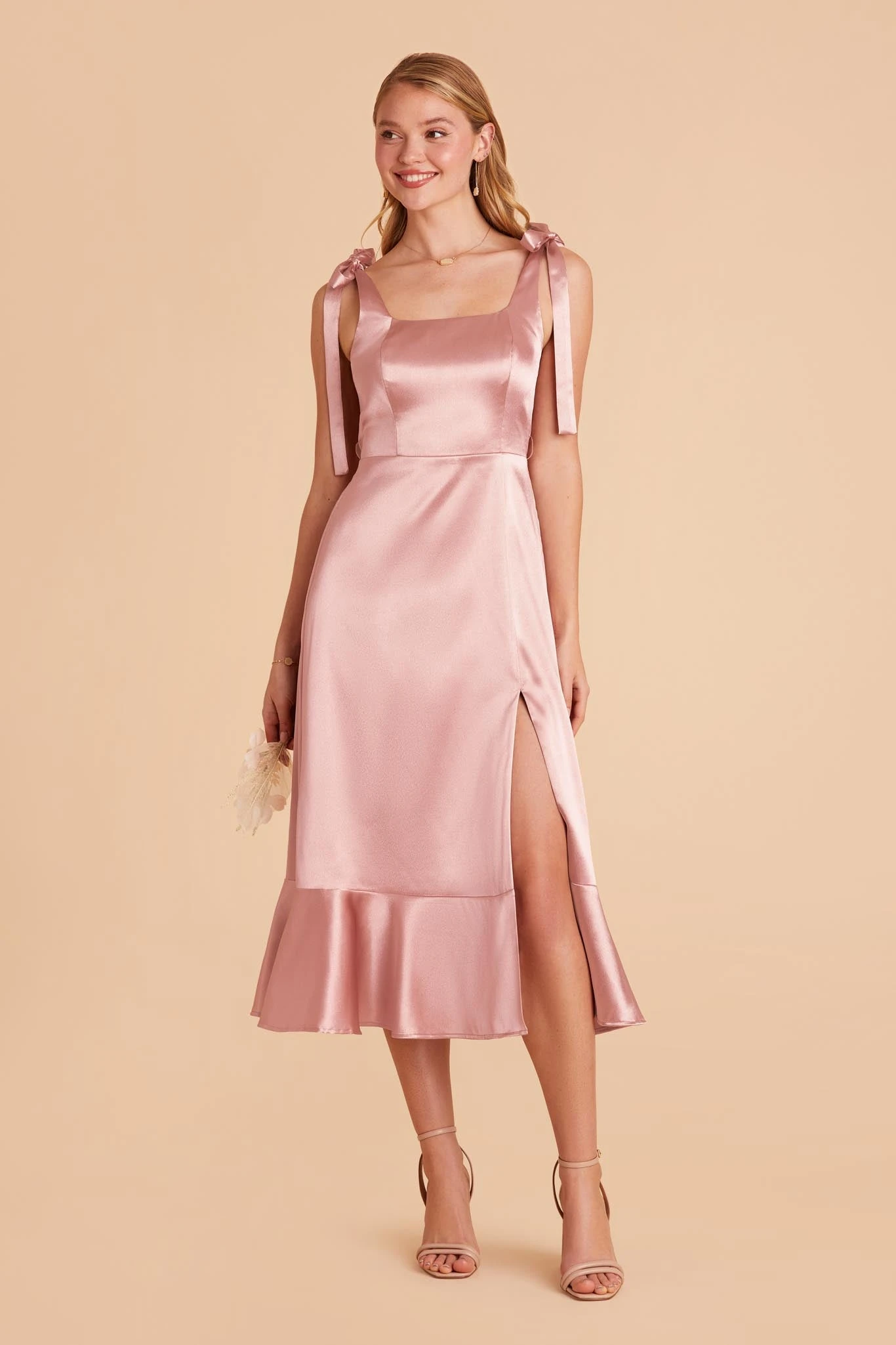 Eugenia Shiny Satin Convertible Midi Dress – English Rose