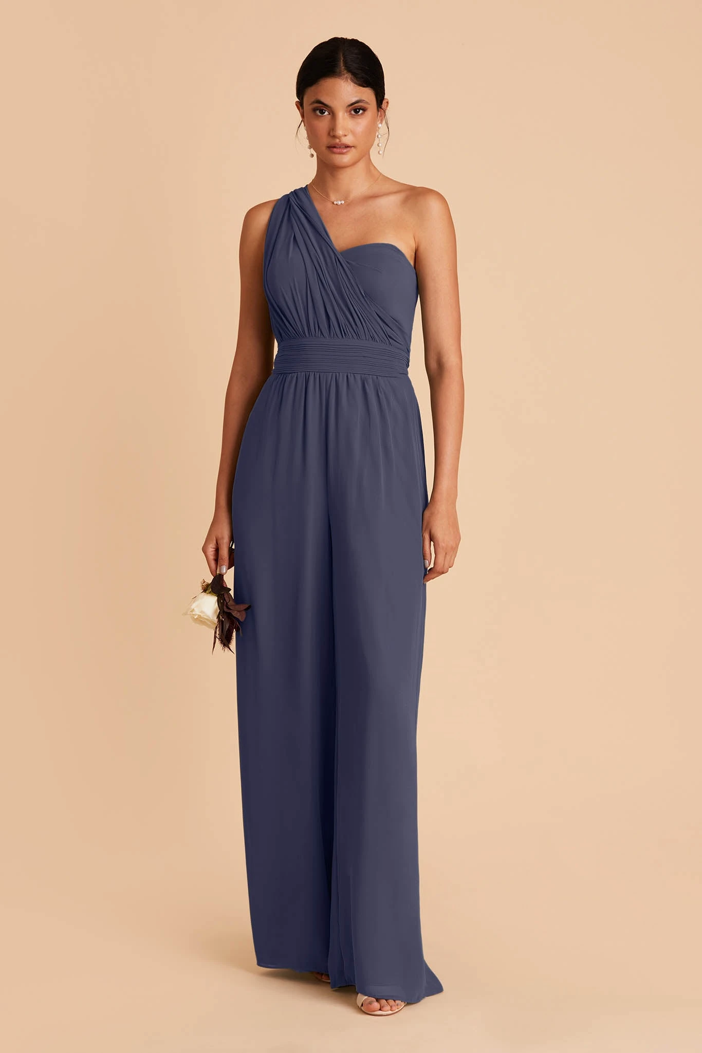 On top, Gigi is reminiscent of our Grace Convertible Dress. She has a pleated sweetheart bodice and two extra-long streamers that allow you to create a near-endless number of necklines. Gigi has bra cups for extra support and hidden pockets, so you’re never too far from your lip gloss. Just a note, the spaghetti straps are super long, so you might want to alter them, depending on which way you decide to arrange the top. On the bottom, she’s got PANTS! Gigi is our very first bridesmaid jumpsuit and needless to say, we’re so in love.