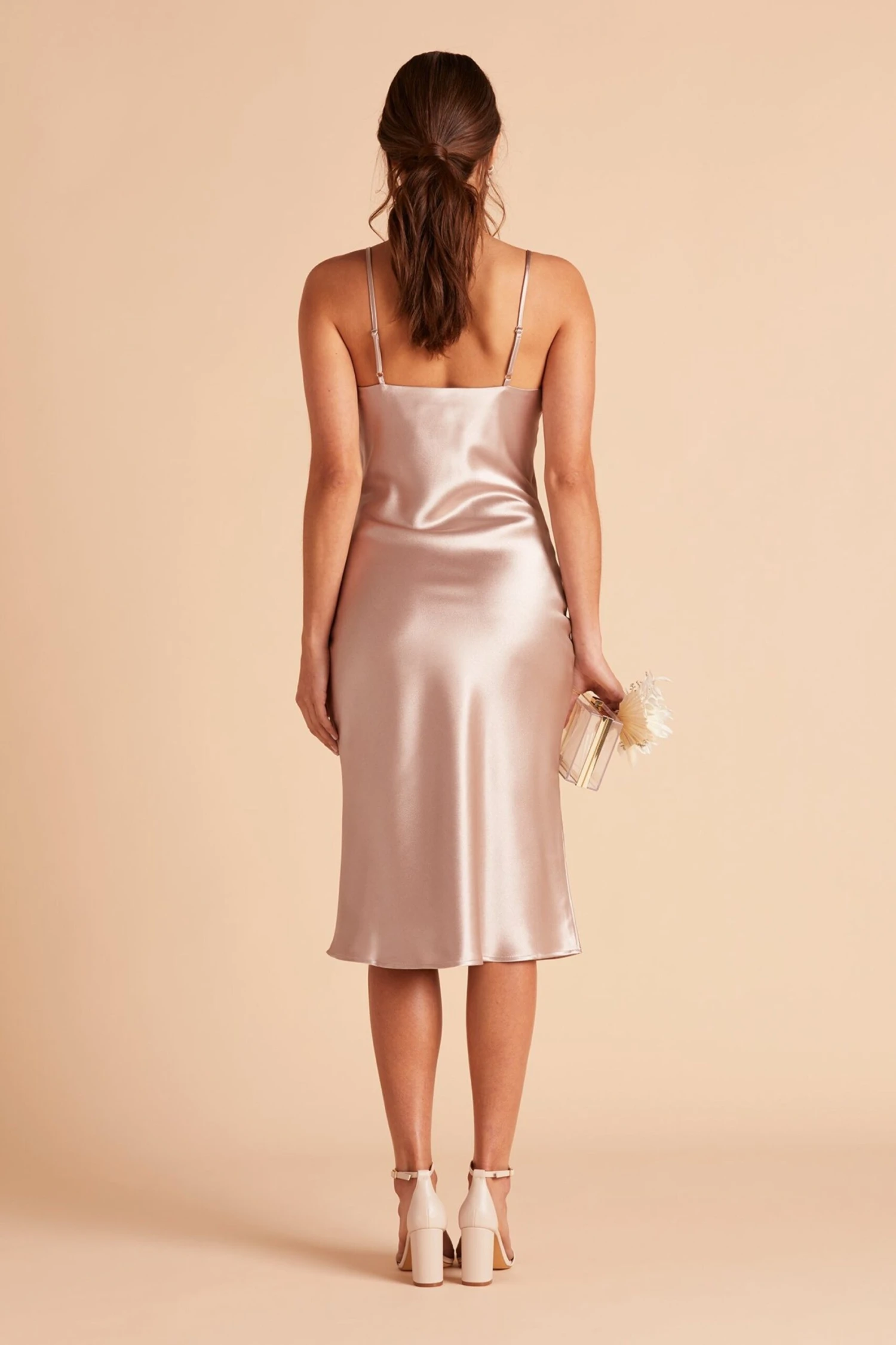 A fresh take on the ’90s classic, our Lisa Satin Midi in taupe is the *perfect* satin bridesmaid dress you’ve been looking for. Spun from a super luxe, shiny poly satin, she features skinny adjustable straps and light cowling in a bias-cut midi silhouette. Needless to say, she’s our top wear-again dress that you can easily style with a slouchy sweater and a boho hat for farmers market runs or a fun date night.