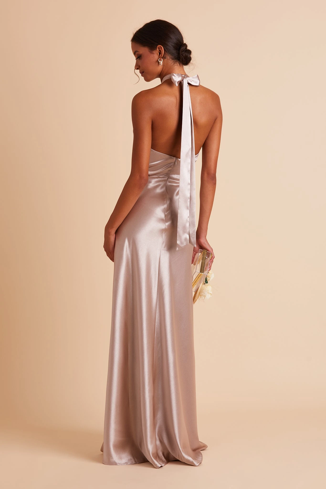 Be the first to review “Monica Shiny Satin Dress – Taupe” Cancel reply