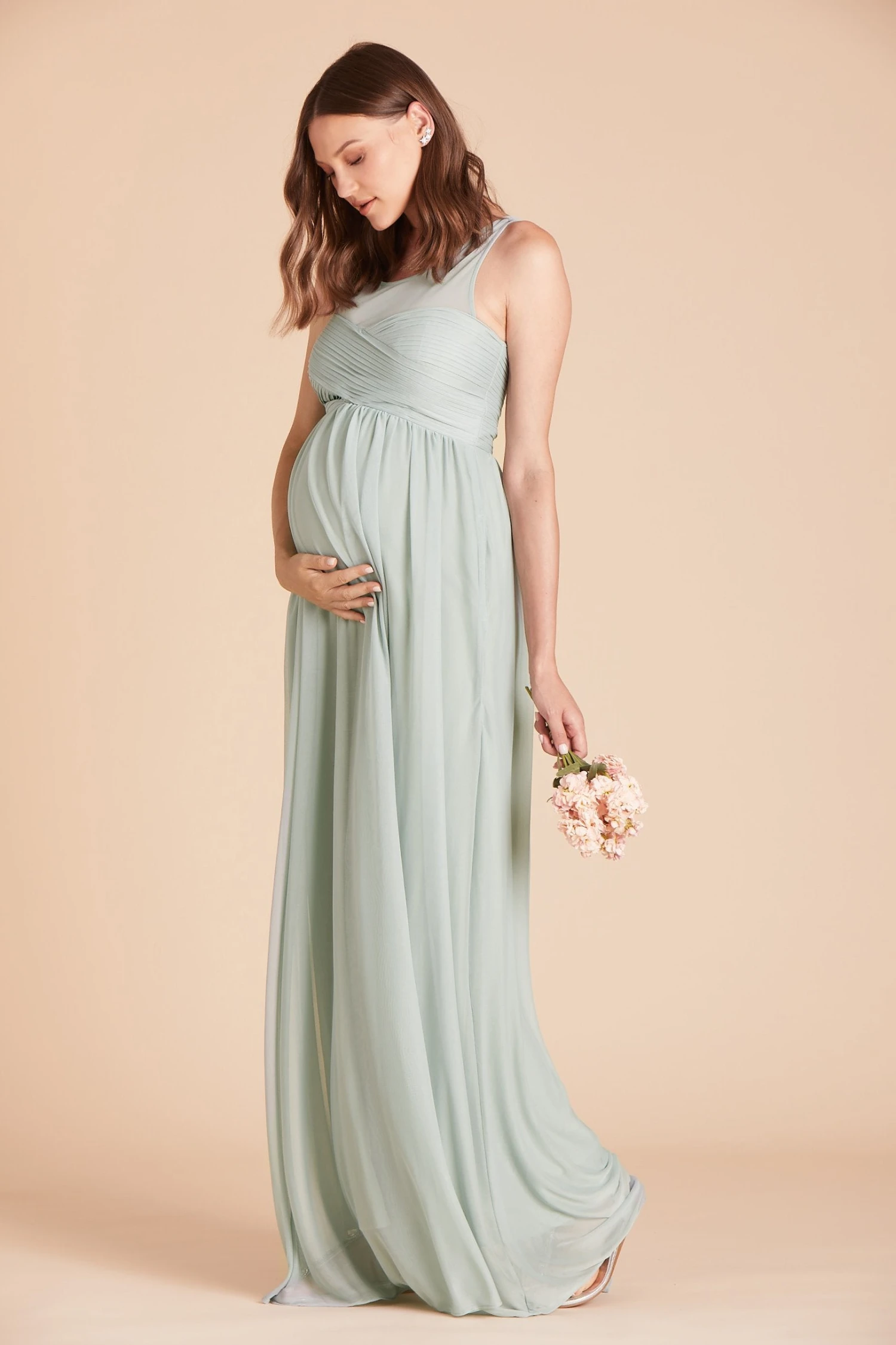 Kick back, relax and enjoy the wedding in our burgundy Ryan Dress, spun of super-comfy stretch mesh with a sheer illusion neckline. The column design creates a long & lean silhouette, while a raised empire waist allows for wiggle room, so that you can move/eat/dance with ease. *Doubles as a maternity bridesmaid dress to show off a cute baby bump.